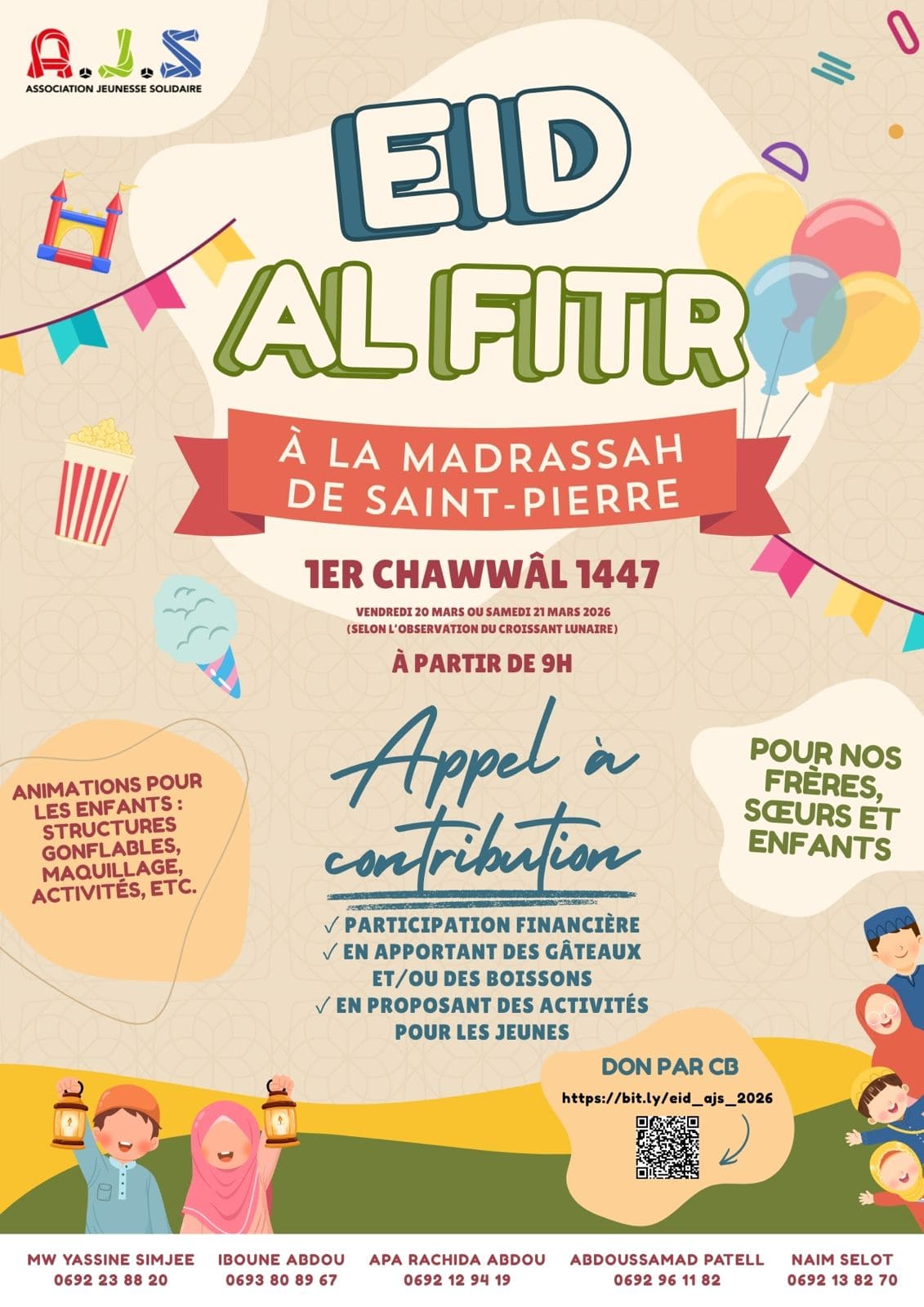 Faire un don en ligne : https://bit.ly/eid_ajs_2026 Ou En chèque ou espèces : auprès des referents.